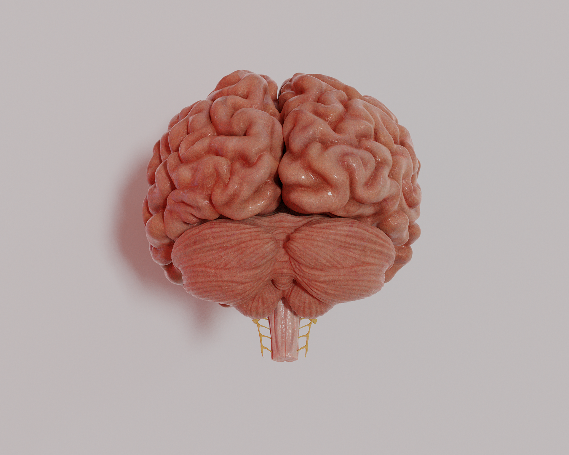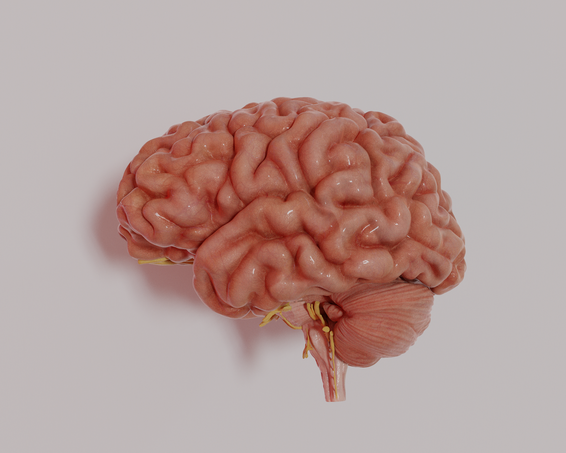 This model showing the cranial nerves of the brain was sculpted in ZBrush and exported to Blender for texturing and rendering. A final rendered image was labelled using InDesign.