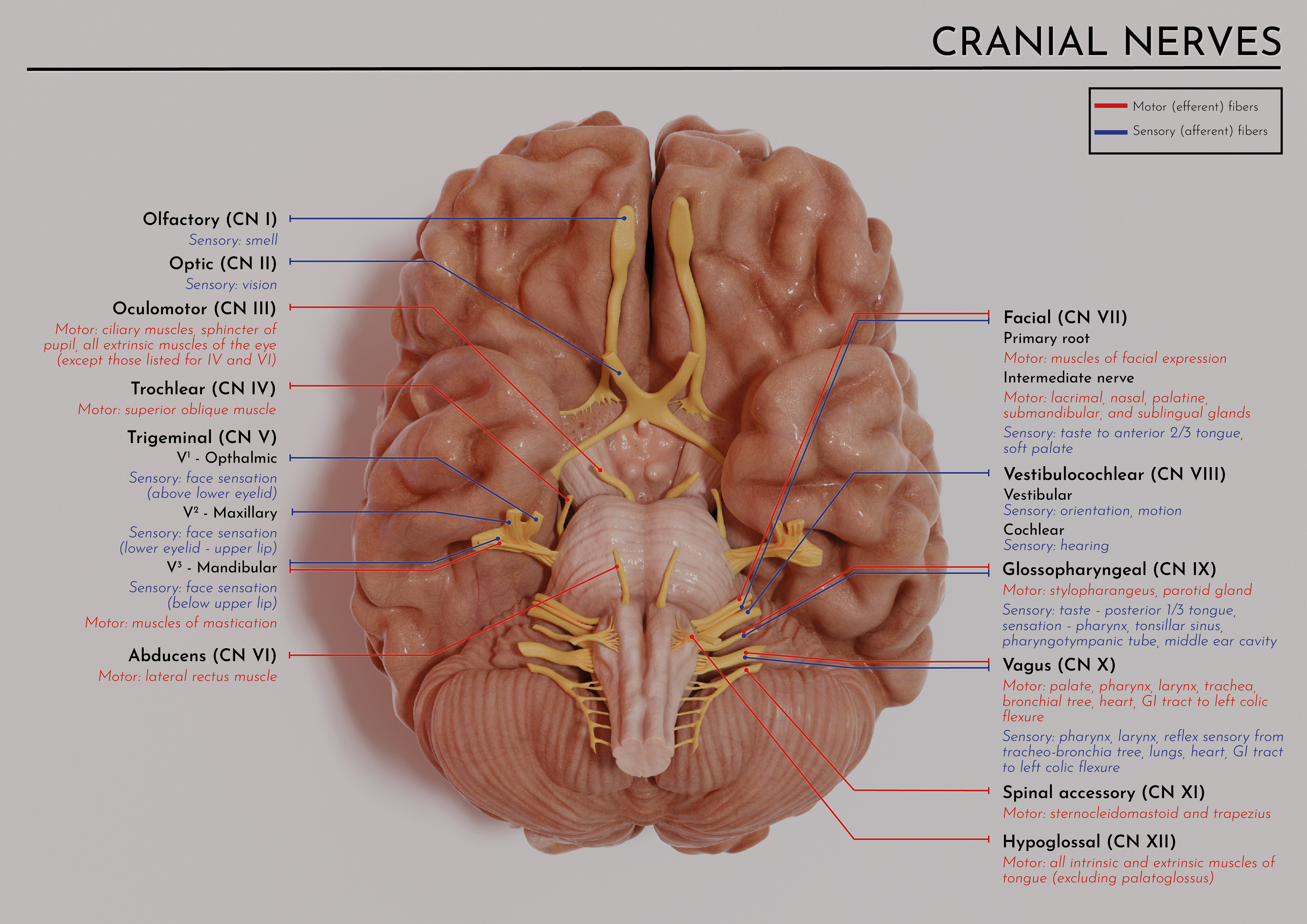 Scientific poster showing cranial nerves - 3D model